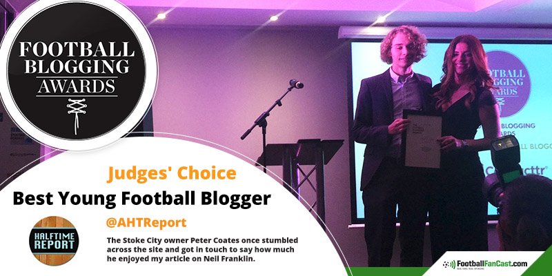 We are delighted to say that ‘A Halftime Report’ won the much-coveted Judges Choice as Best Young Football Blog. Having only created the website in May of this year it was a shock to even be nominated and to be a finalist at this years event, never mind to win it. I would like to thank each and every one of those who voted, those who read the site and those who have congratulated me since winning the award. I would also like to thank the judges, who ultimately were the one’s who chose me for this accolade, many of whom are highly respected individuals within the field, so for them to pick AHTR is a real honour.